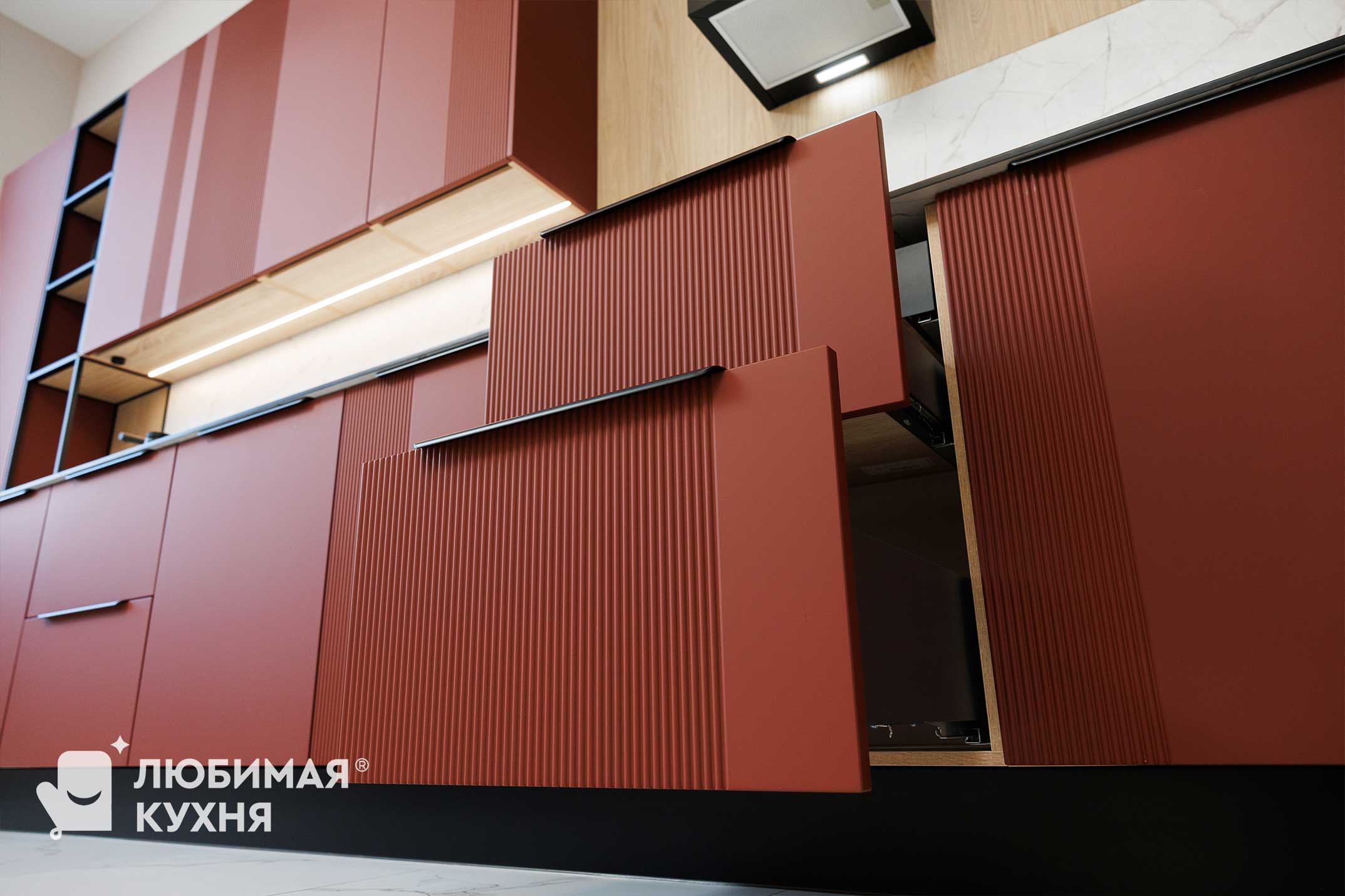 фасады ТРП Стронг кампари, индивидуальная фрезеровка, пеналы ЛДСП H1367 ST40 Дуб Каселла натуральный светлый